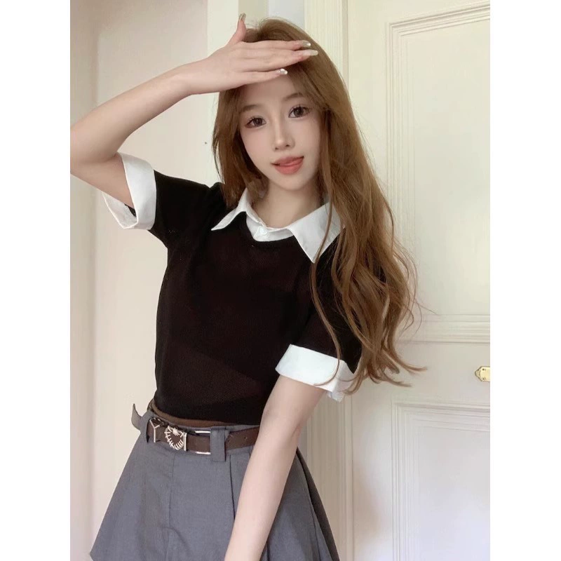 | nameOriginal | Age-reducing contrasting color T-shirt slim fit short top fake two pieces |