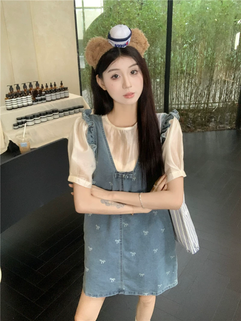| nameOriginal | Age-reducing denim dress with loose bow print |