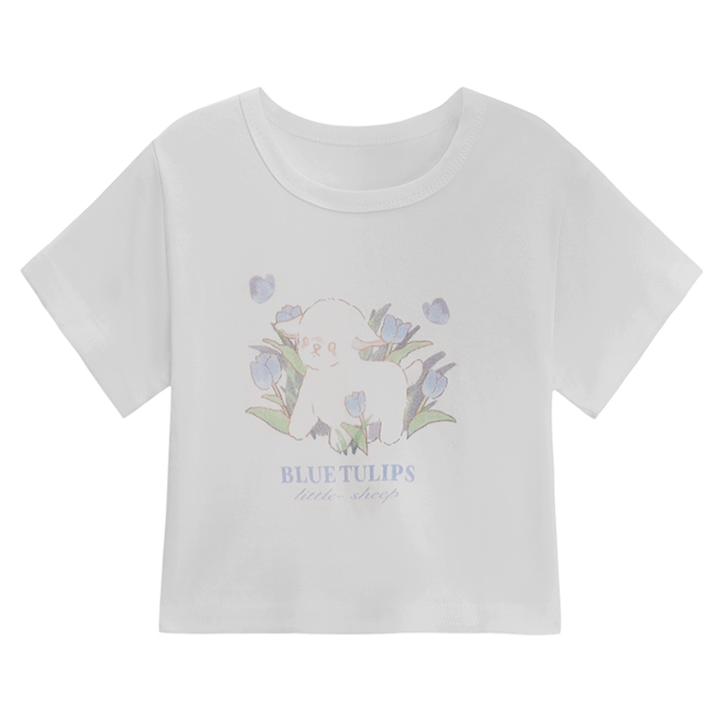 Age-reducing design right shoulder cartoon short-sleeved ins T-shirt