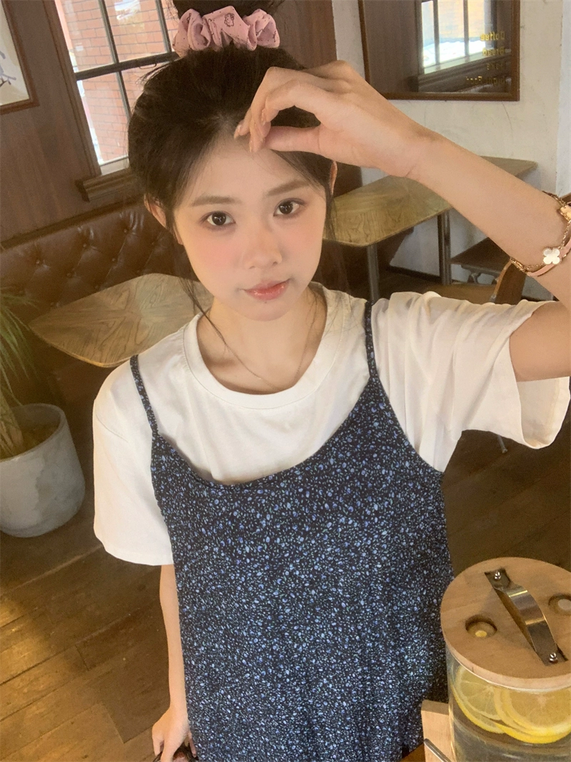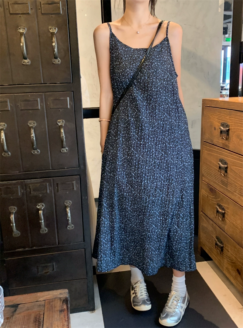 Age-reducing dress summer retro temperament floral suspender belt