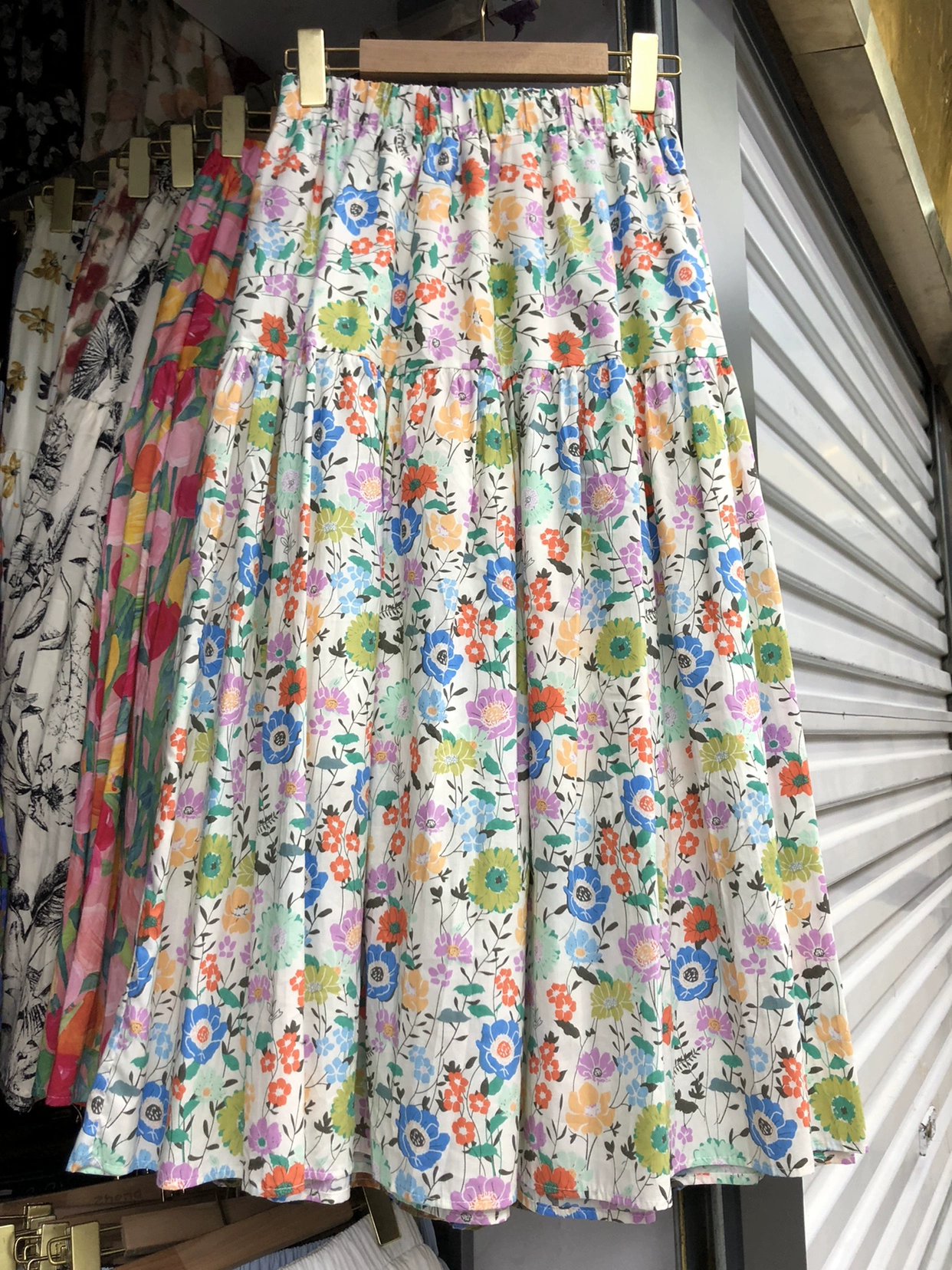 | nameOriginal | Age-reducing floral summer a-line knee-length mid-length skirt |