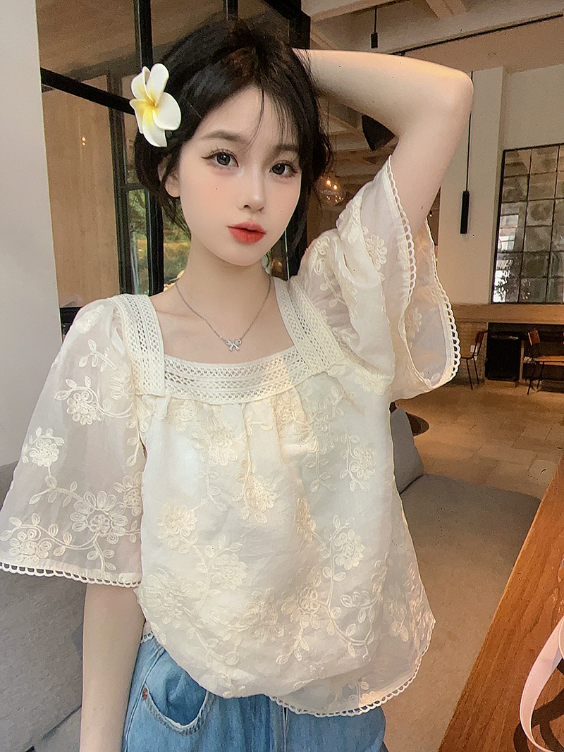 | nameOriginal | Age-reducing French square collar fat girl chiffon short-sleeved shirt |
