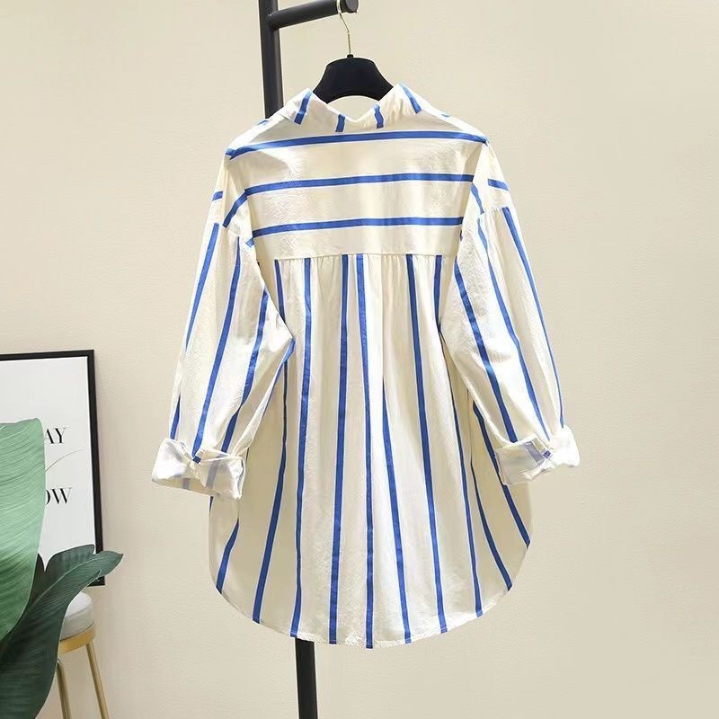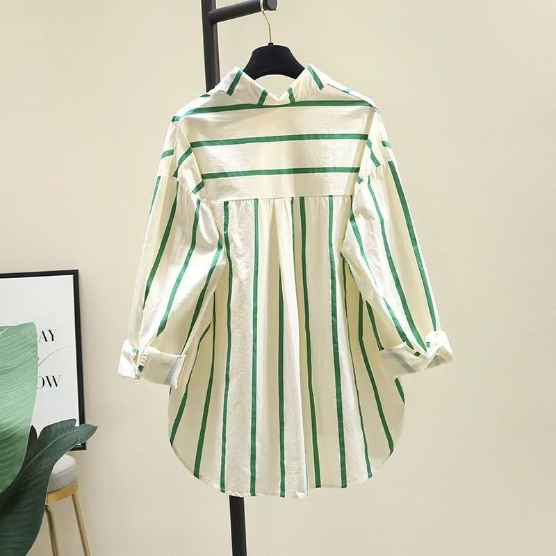 | nameOriginal | Age-reducing Green Striped Shirt Women's Spring, Summer and Autumn New Korean-style Loose Casual Long-sleeved Shirt Sun-protective Shirt Top |