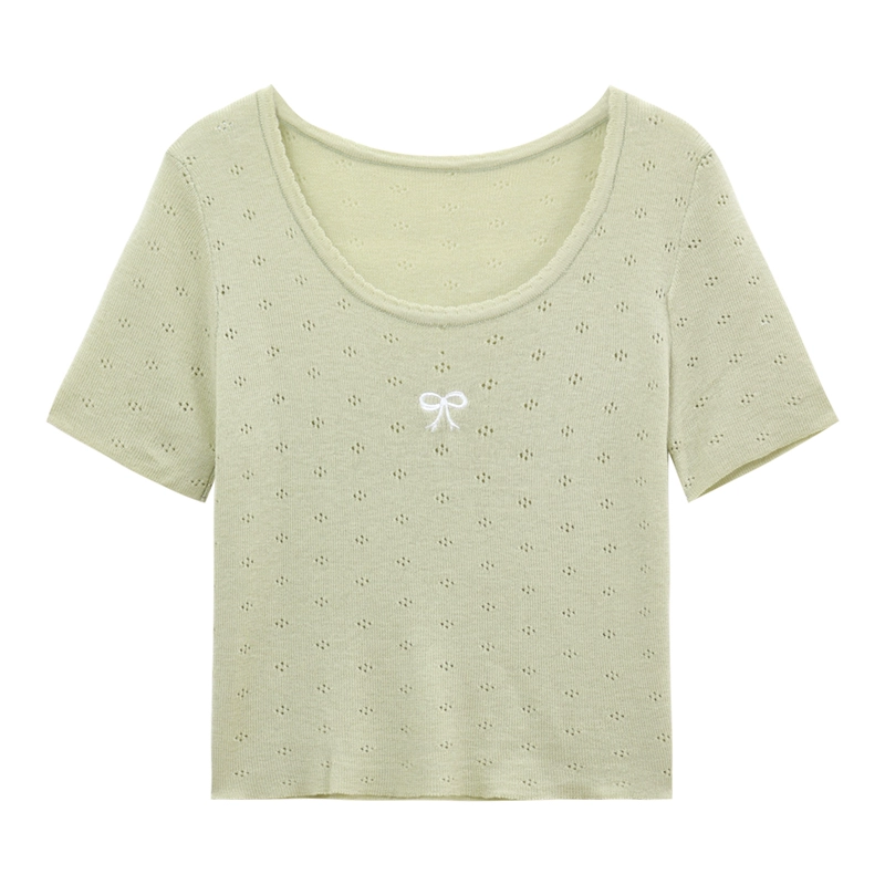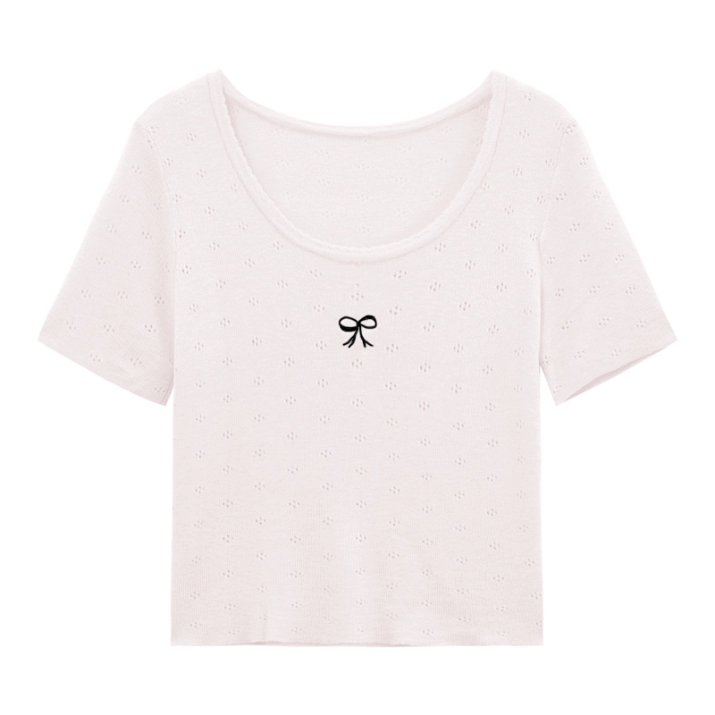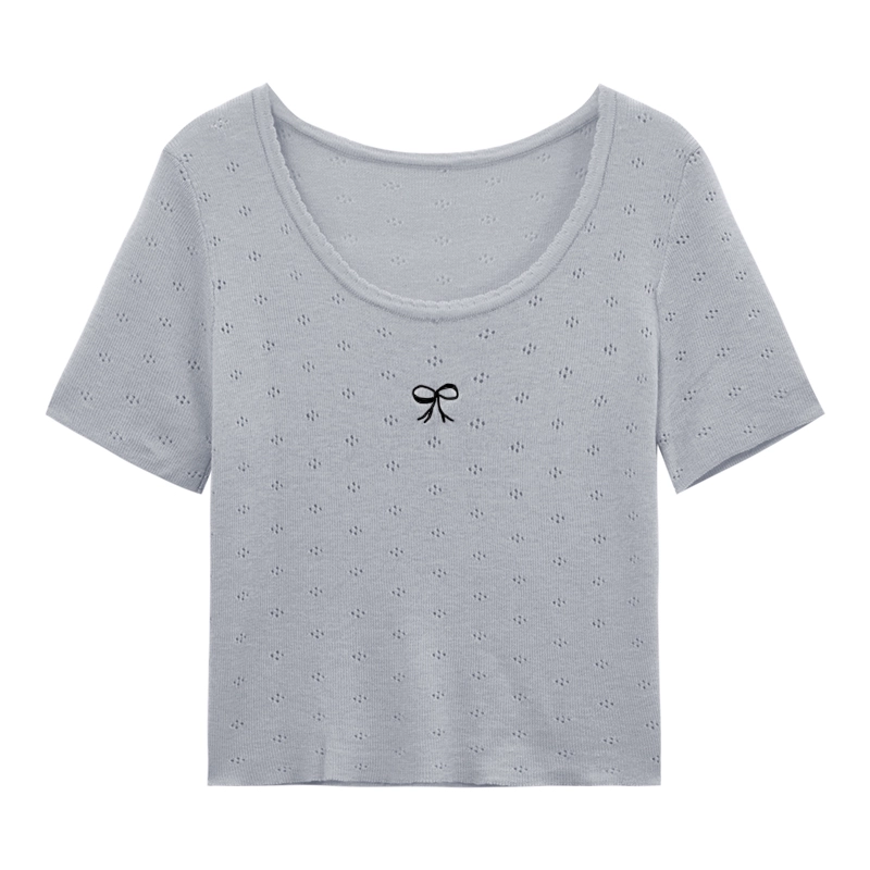 Age-reducing ice silk embroidered knitted casual slimming bow