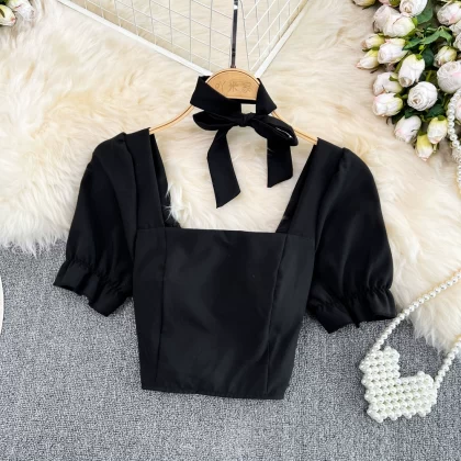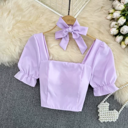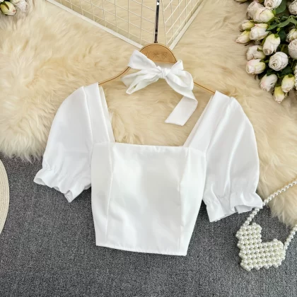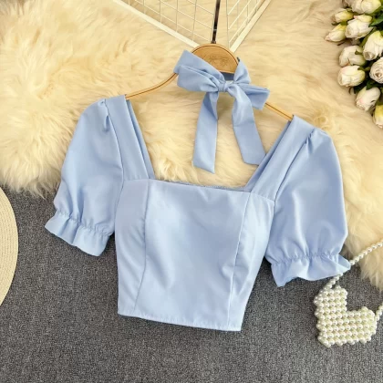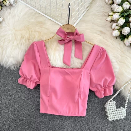 | nameOriginal | Age-reducing Korean style square collar bubble pullover slim short sleeves |