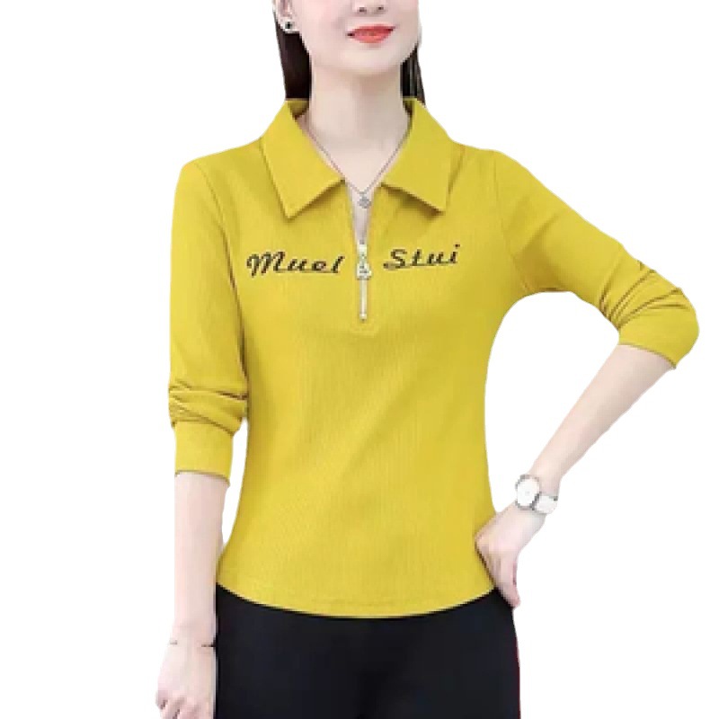 | nameOriginal | Age-reducing Korean T-shirt Women's T-shirt 2024 Slimming Top Polo Shirt Long Sleeve Spring and Autumn Western Style Base Shirt |