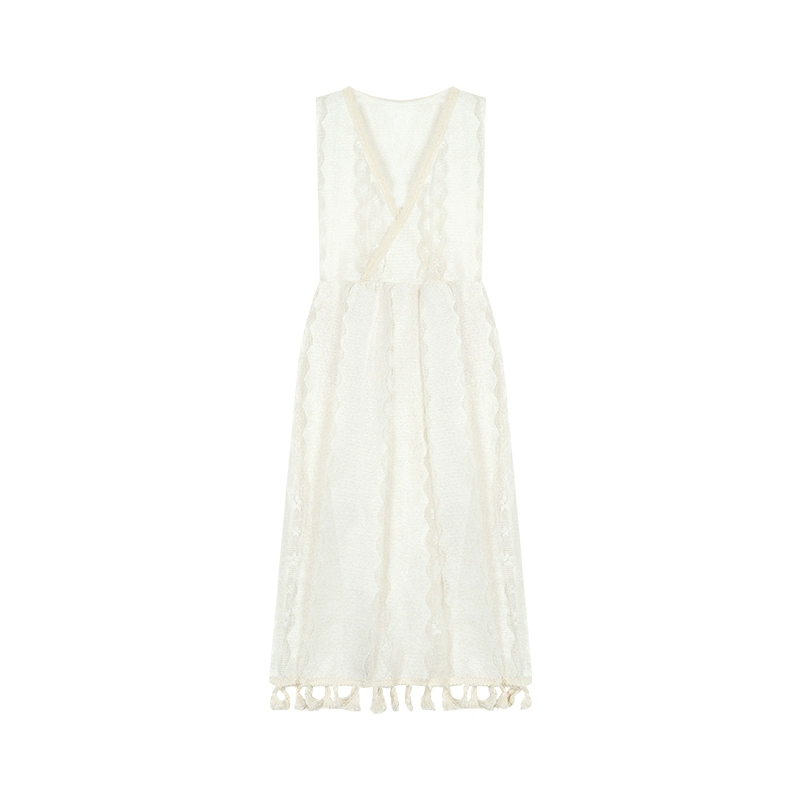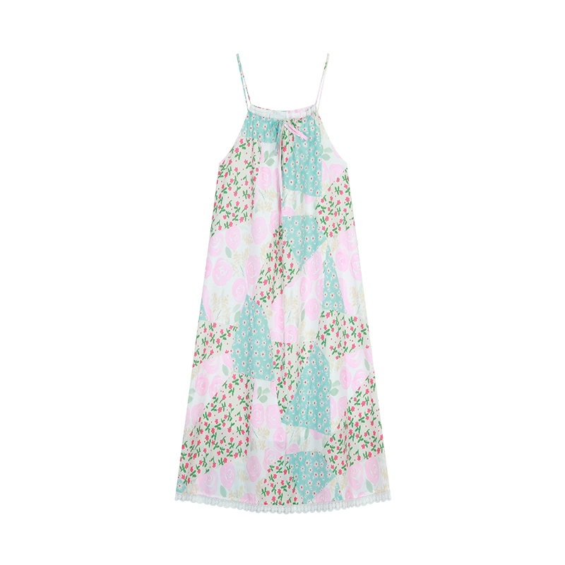Age-reducing kumikumi lace sundress with floral suspenders