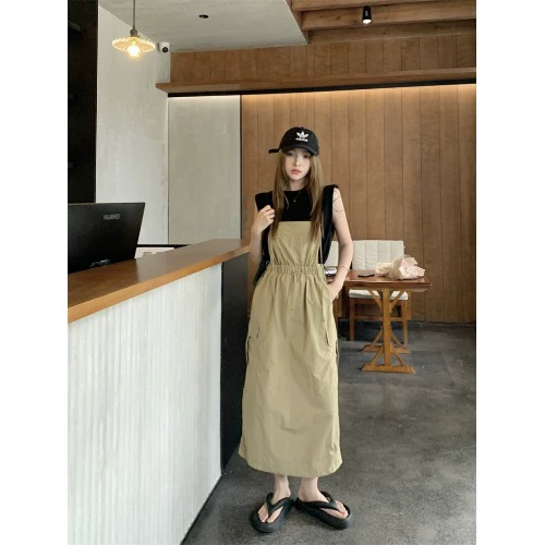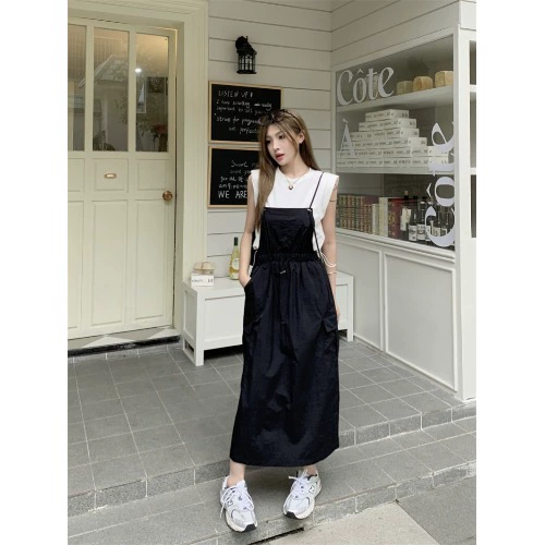 Age-reducing kumikumi sleeveless T-shirt two-piece suspenders