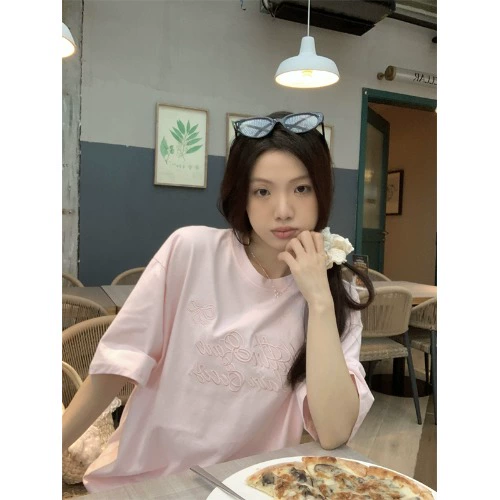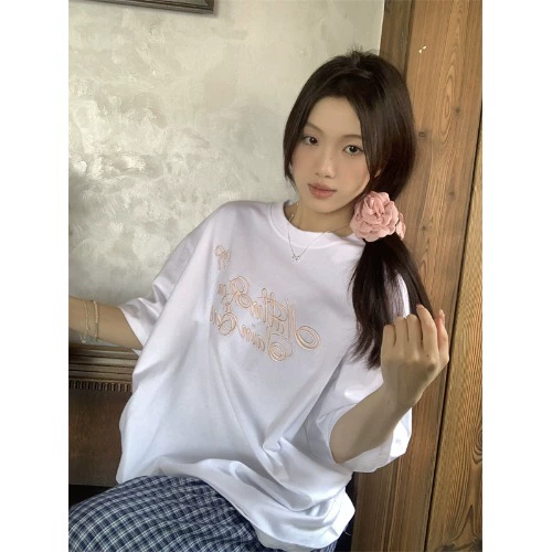 | nameOriginal | Age-reducing letter short-sleeved summer design with loose embroidery |