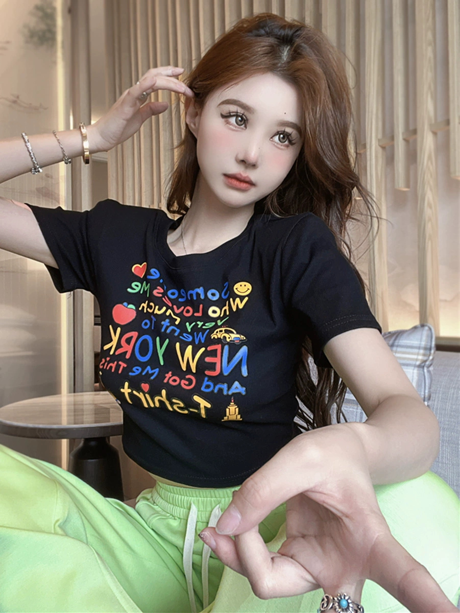 | nameOriginal | Age-reducing letters round neck slim fit ins printed short-sleeved T-shirt |