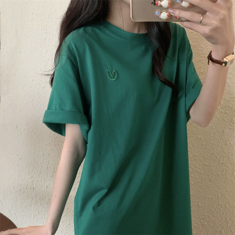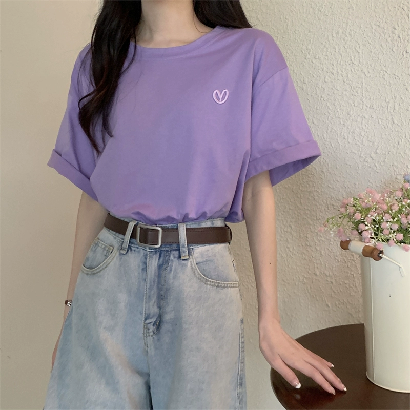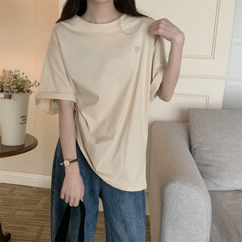 | nameOriginal | Age-reducing loose design love embroidered half-sleeved top |