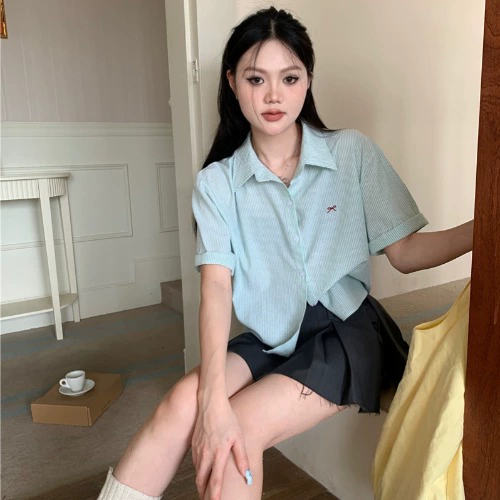 | nameOriginal | Age-reducing loose single-breasted bow short-sleeved top |