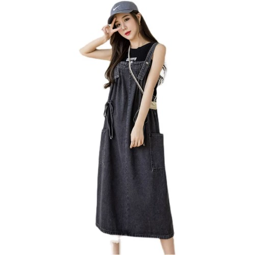 | nameOriginal | Age-reducing loose waisted denim A-line suspender dress |