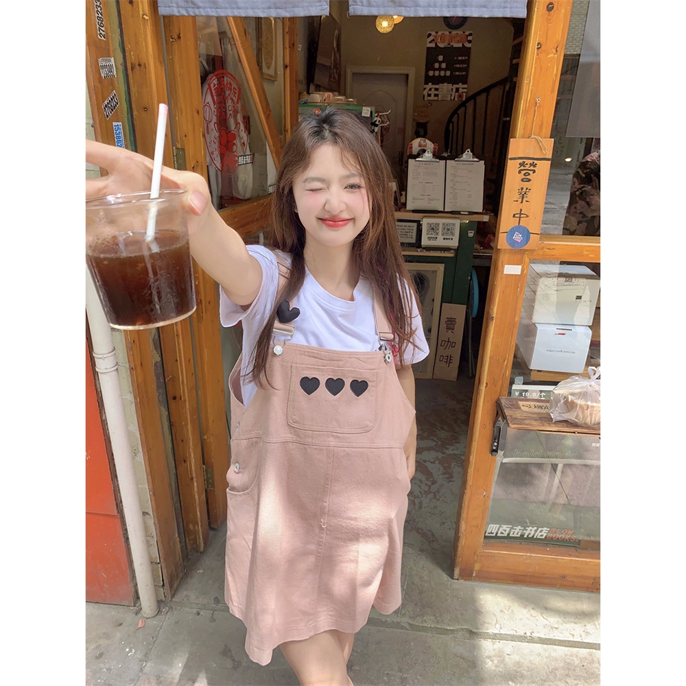 | nameOriginal | Age-reducing love suspender skirt summer pink loose embroidery |
