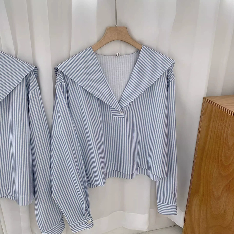 | nameOriginal | Age-reducing Omni striped long-sleeved navy collar loose shirt |