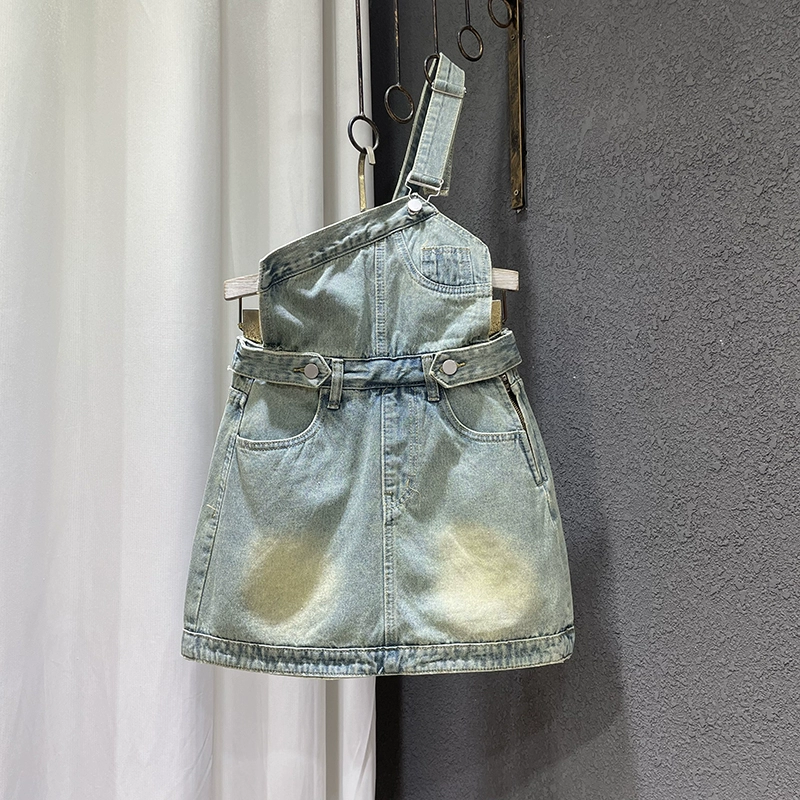 | nameOriginal | Age-reducing one-shoulder denim summer Korean style short skirt straps |