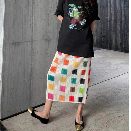 | nameOriginal | Age-reducing personality and lively Miyake rainbow short-sleeved T-shirt |