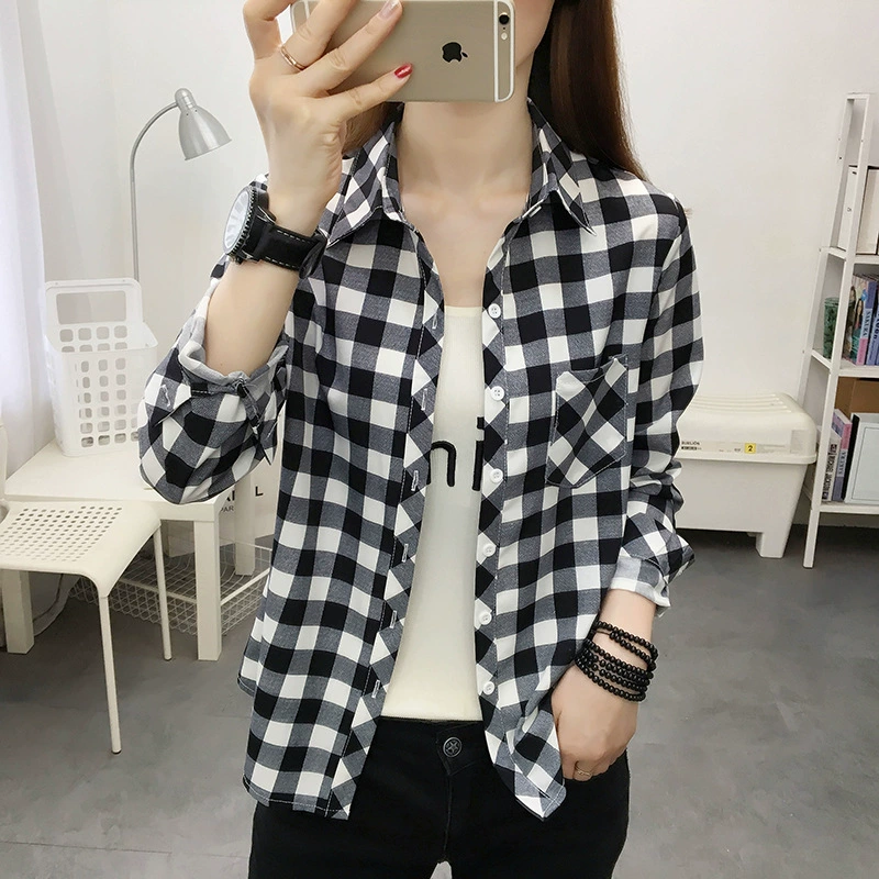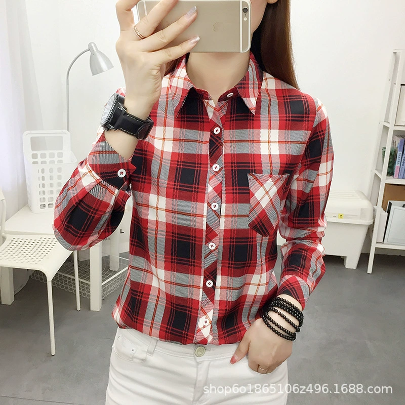 Age-reducing plaid loose long-sleeved casual thin jacket shirt