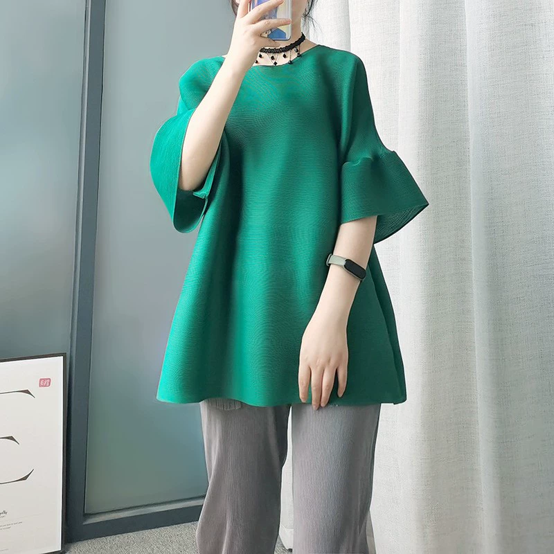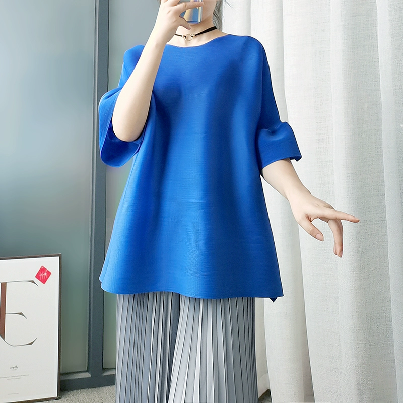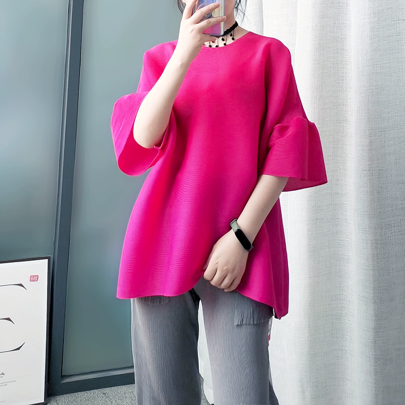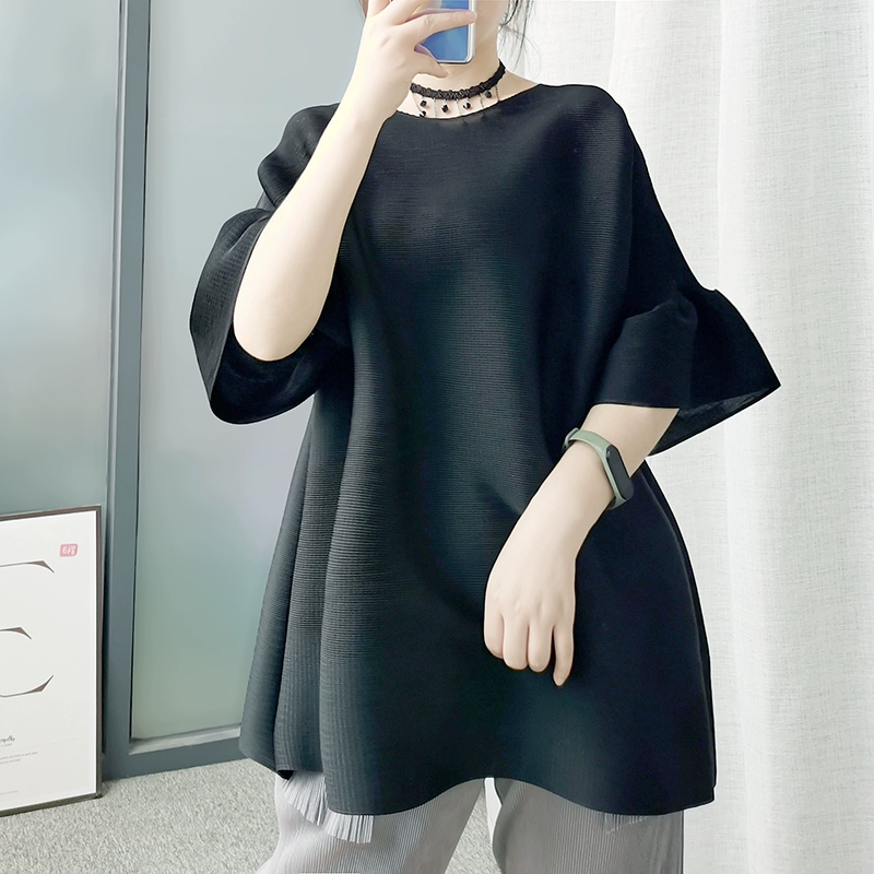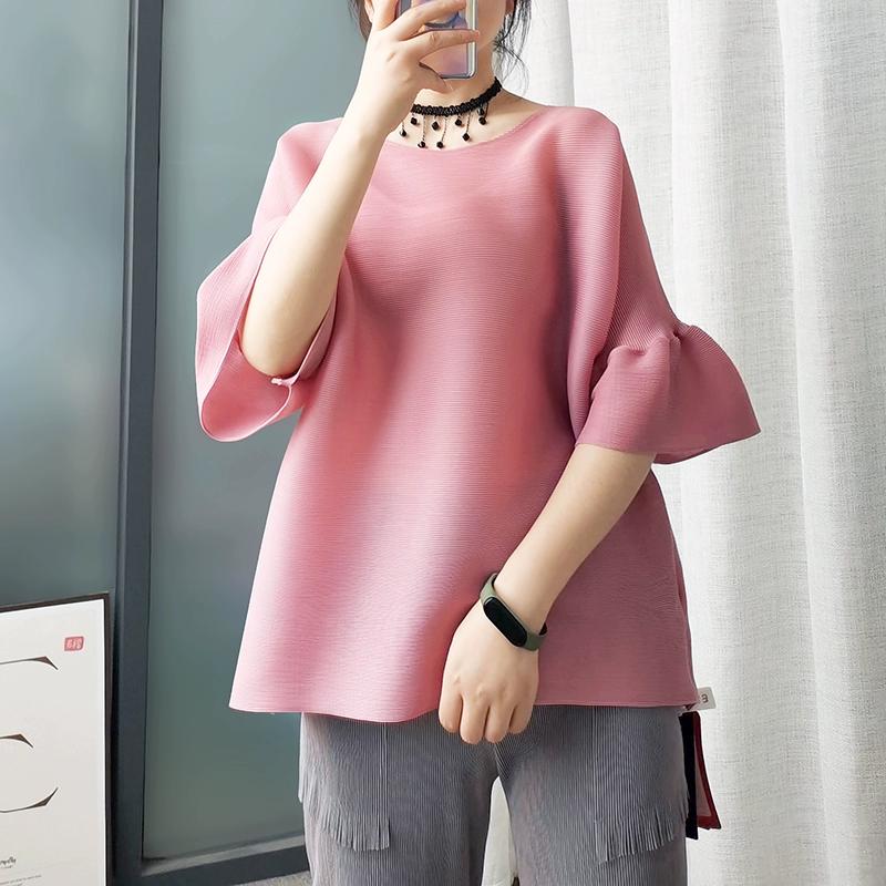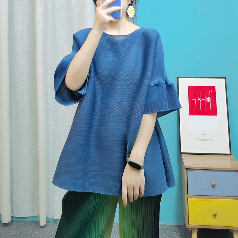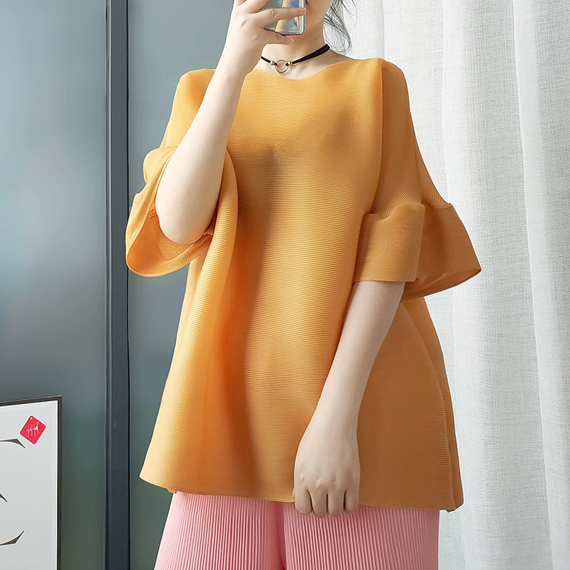 | nameOriginal | Age-reducing pleated loose baton half-sleeved solid color top |