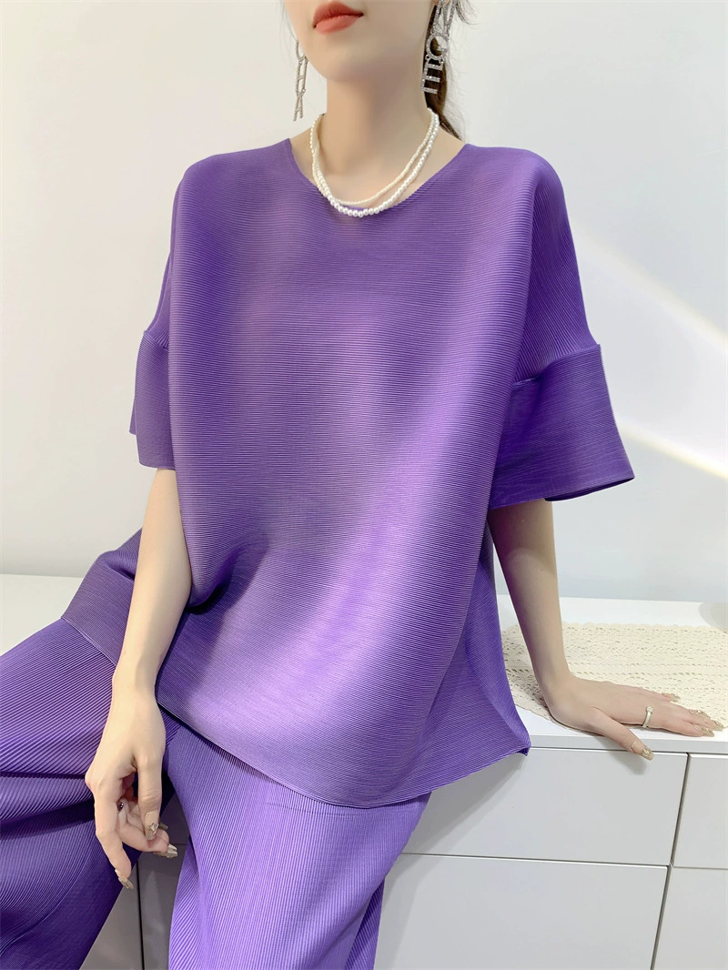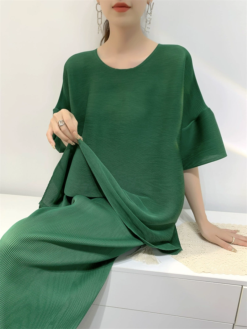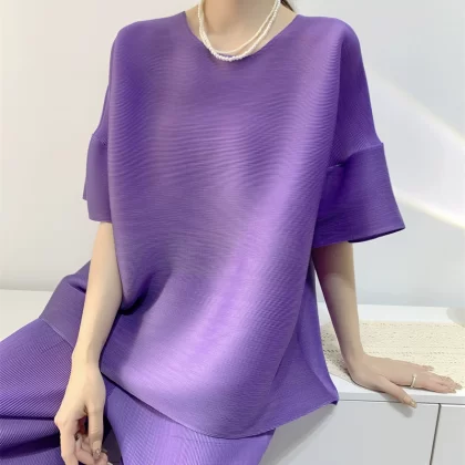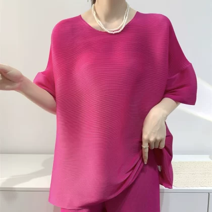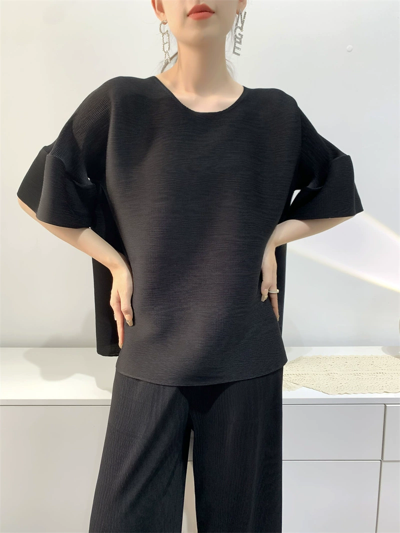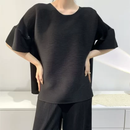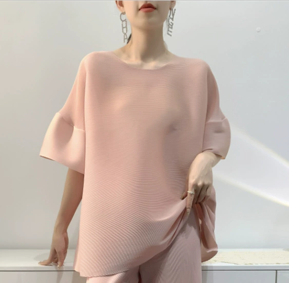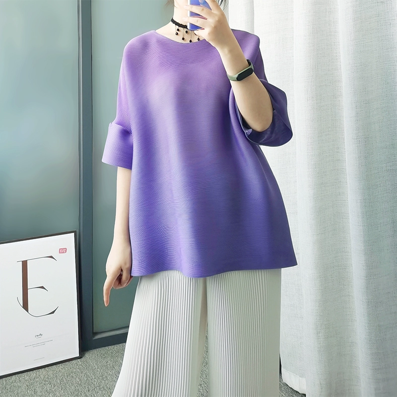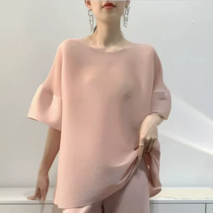 | nameOriginal | Age-reducing pleated loose baton half-sleeved solid color top |