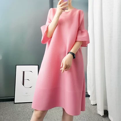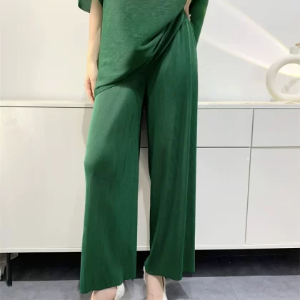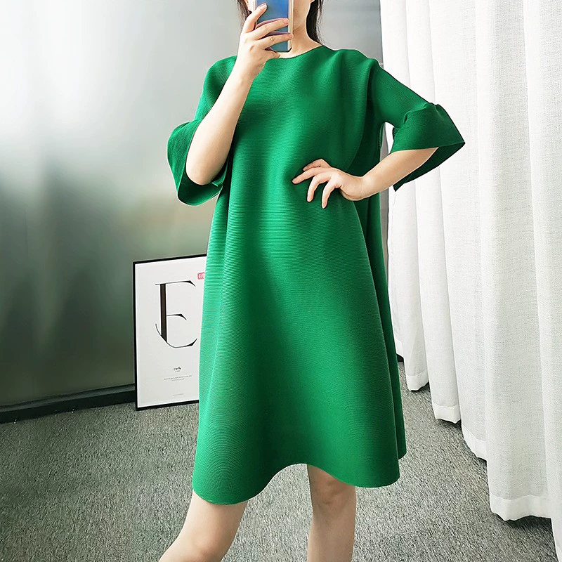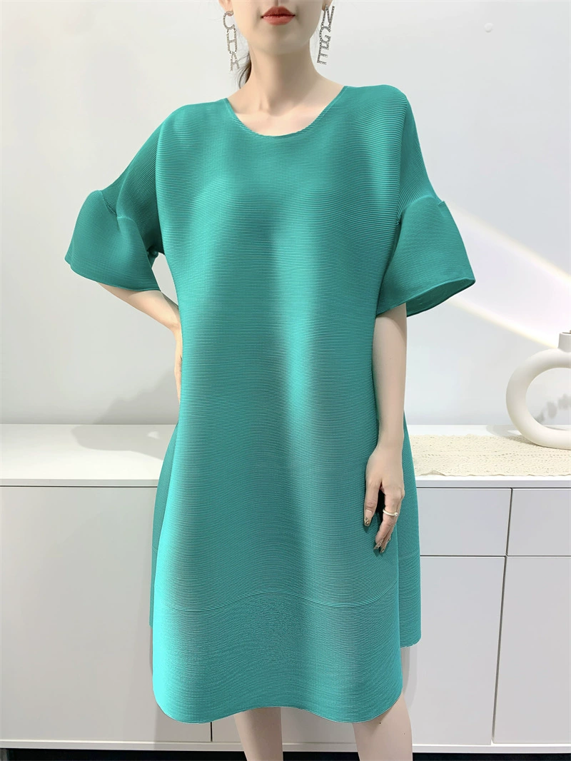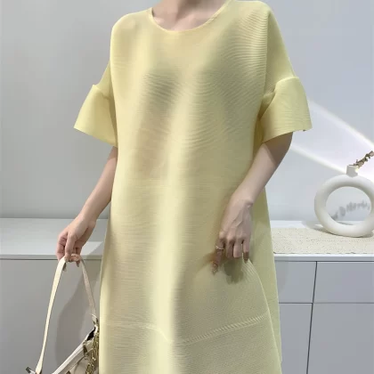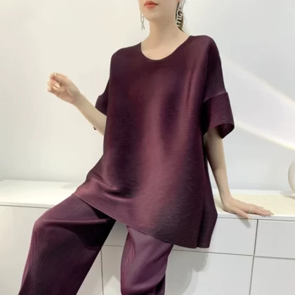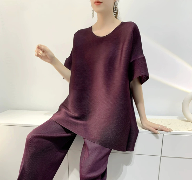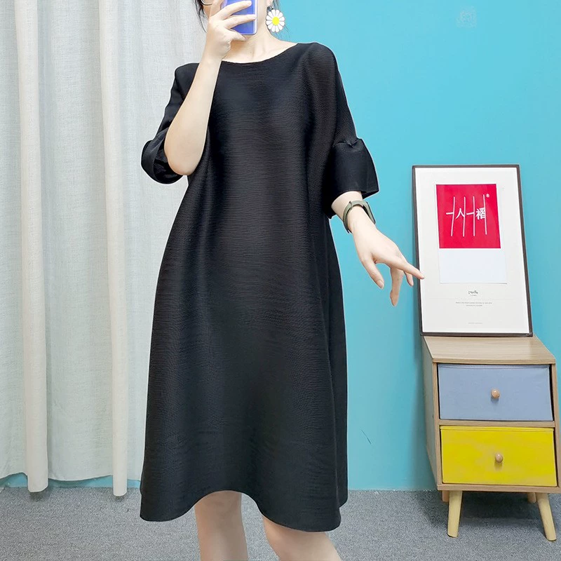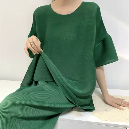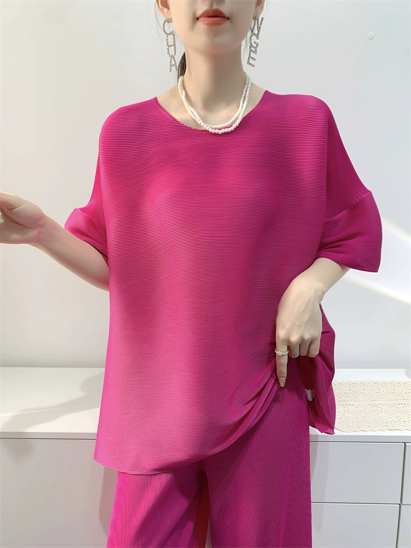 | nameOriginal | Age-reducing pleated loose baton half-sleeved solid color top |