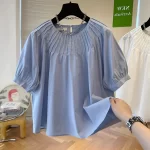 | nameOriginal | Age-reducing pleated round neck short-sleeved stylish and beautiful shirt |