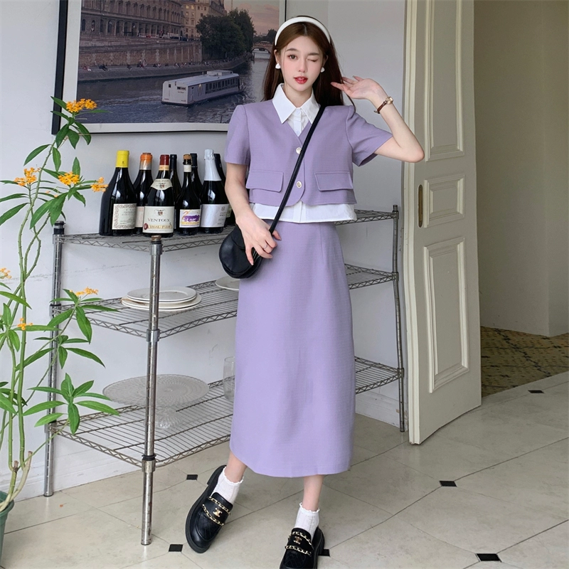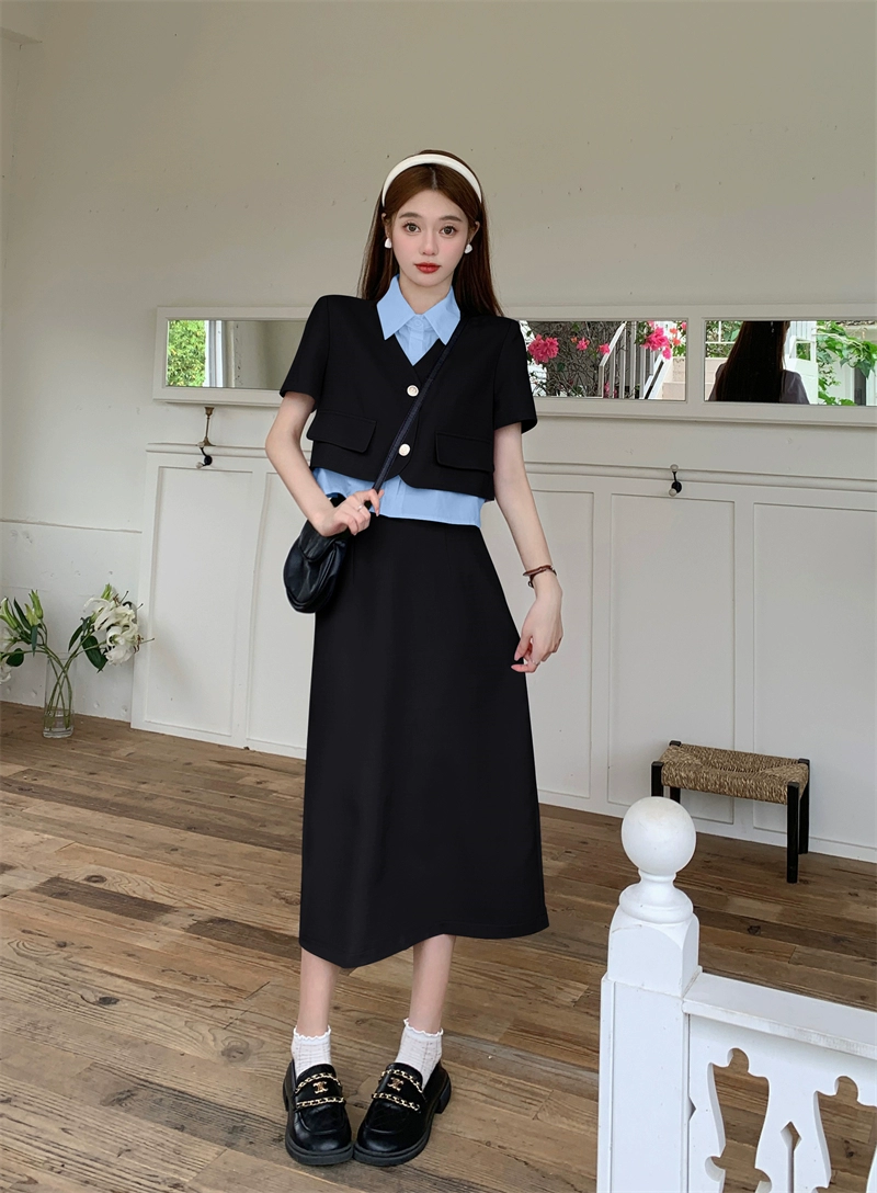 | nameOriginal | Age-reducing plus-size fat girl's suit looks slimming and covers her flesh, fake two-piece suit |