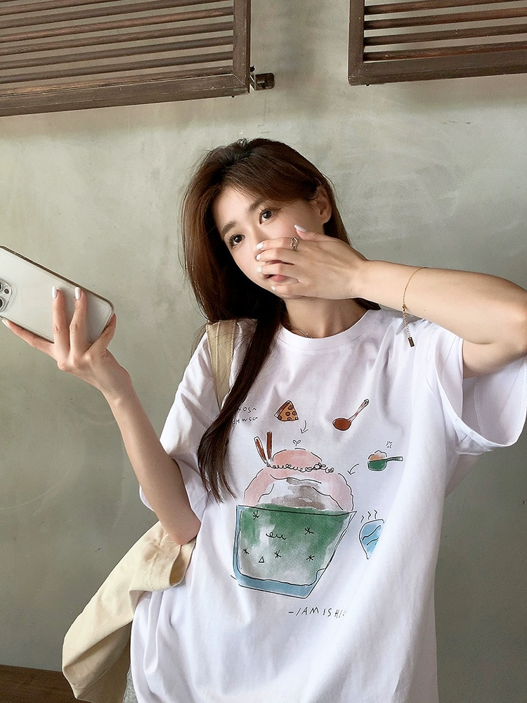 Age-reducing printed summer design casual short-sleeved T-shirt