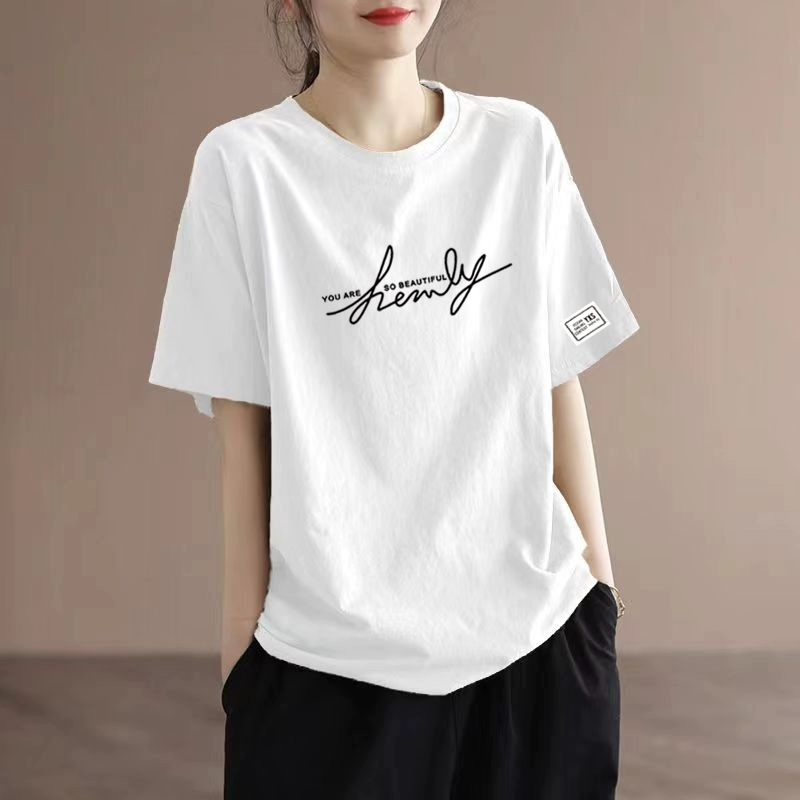 | nameOriginal | Age-reducing pure cotton loose round neck tops short-sleeved T-shirt |