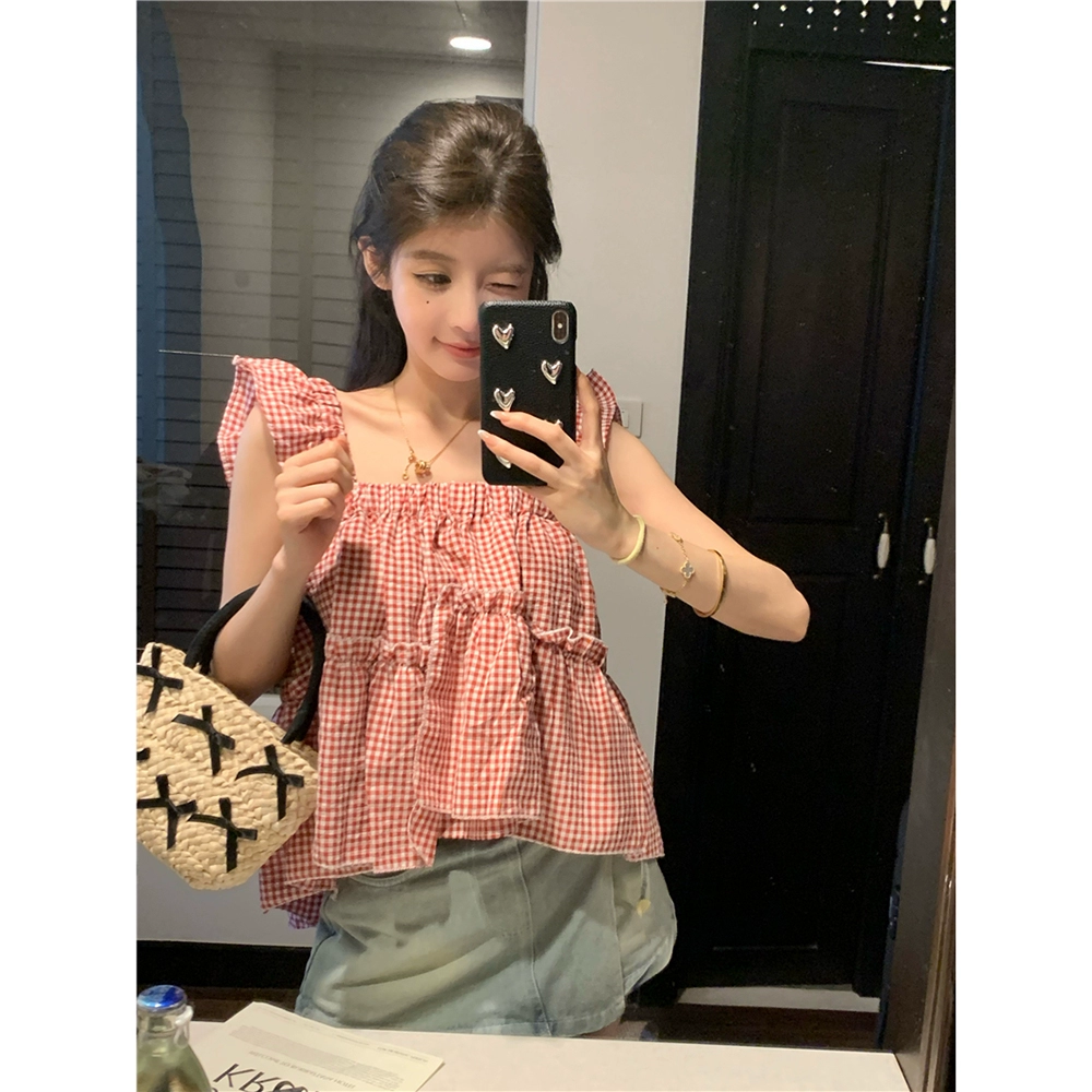 | nameOriginal | Age-reducing red plaid fashion niche design shirt |
