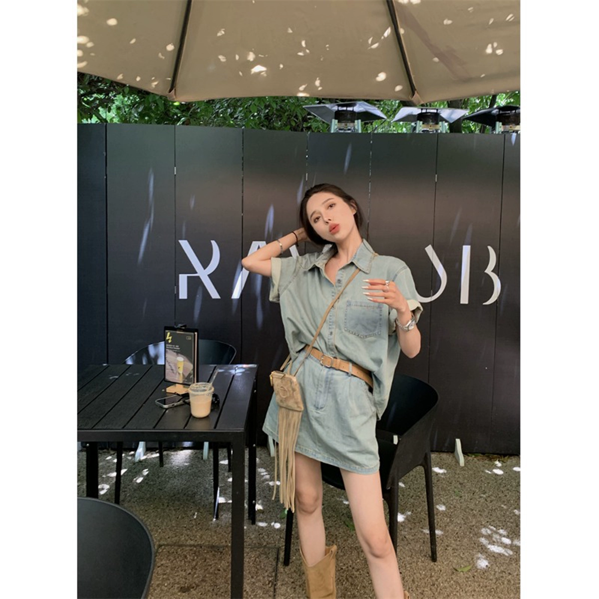 | nameOriginal | Age-reducing retro denim polo collar slimming high-waisted shirt |