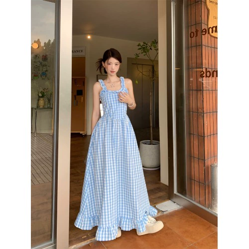 | nameOriginal | Age-reducing retro plaid summer waist-cinching suspender dress |
