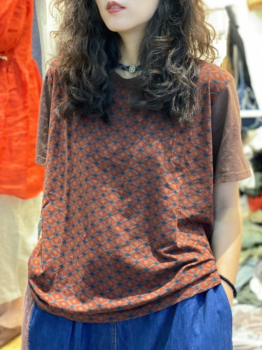 Age-reducing retro prints to make you look thin and cover your meat short-sleeved T-shirt