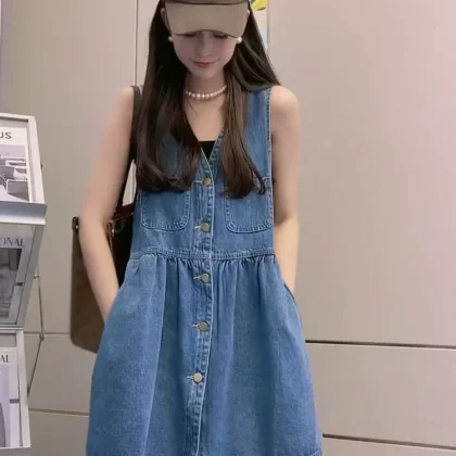 | nameOriginal | Age-reducing retro summer loose a-line denim suspender skirt |