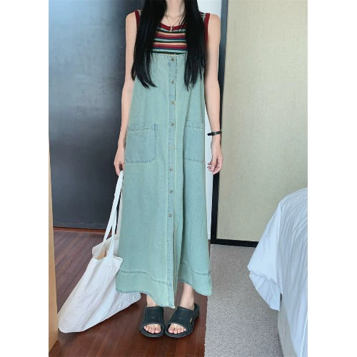 | nameOriginal | Age-reducing retro washed denim summer suspender dress |