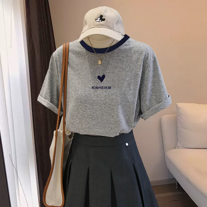 | nameOriginal | Age-reducing right shoulder pure cotton ins slimming summer short-sleeved T-shirt |