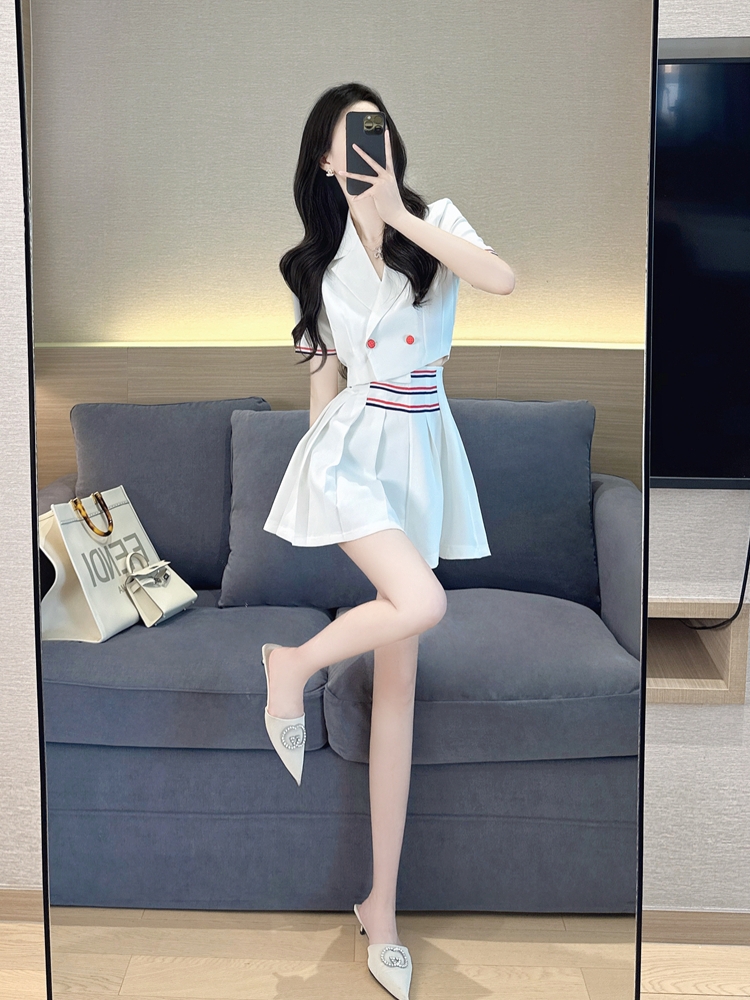 | nameOriginal | Age-reducing set of western style preppy style A-line skirt summer dress |
