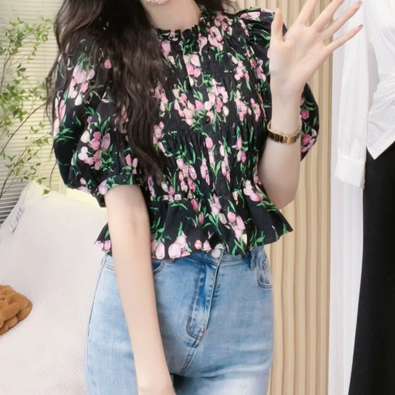 | nameOriginal | Age-reducing short-sleeved, beautiful and stylish waist-cinching chiffon shirt |