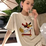 Age-reducing short-sleeved loose casual design with puppy embroidery