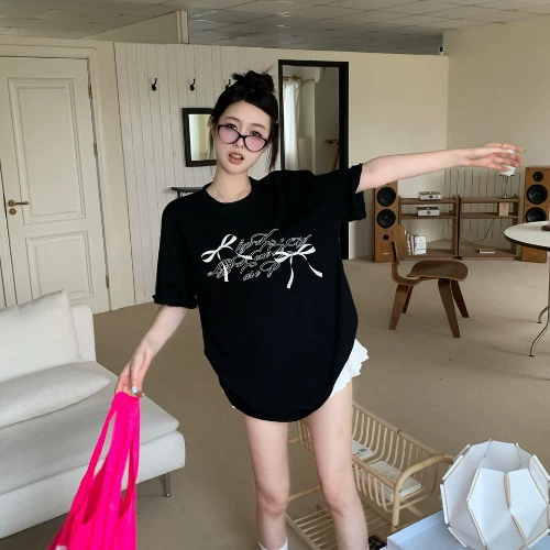 | nameOriginal | Age-reducing short-sleeved summer loose top with bow print |