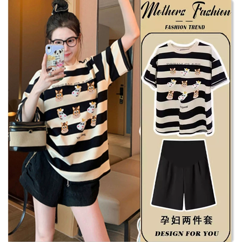 | nameOriginal | Age-reducing slimming striped belly-supporting shorts two-piece set for pregnant women |