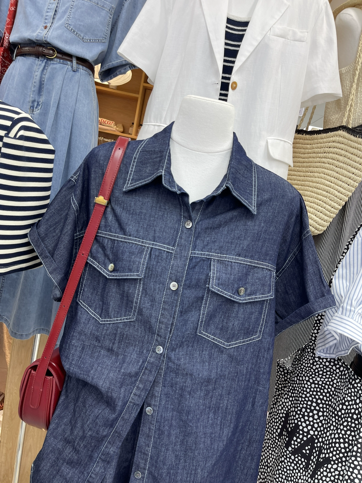 | nameOriginal | Age-reducing solid color washed topstitch denim elastic top |