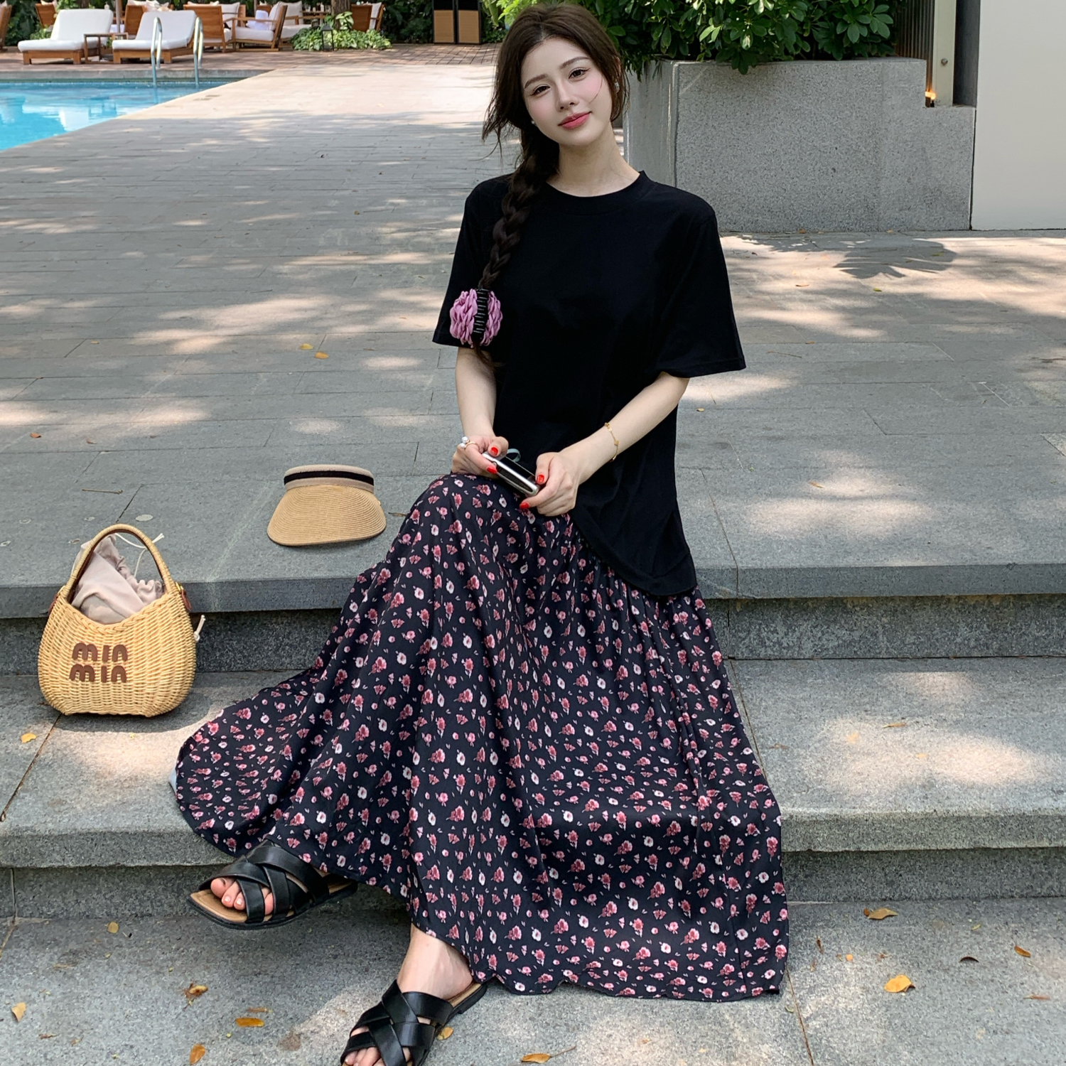 | nameOriginal | Age-reducing splicing summer loose short-sleeved floral dress |