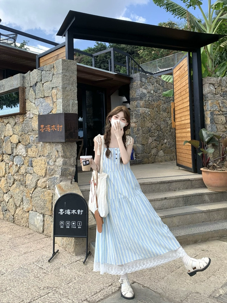 | nameOriginal | Age-reducing striped summer temperament loose suspender dress |