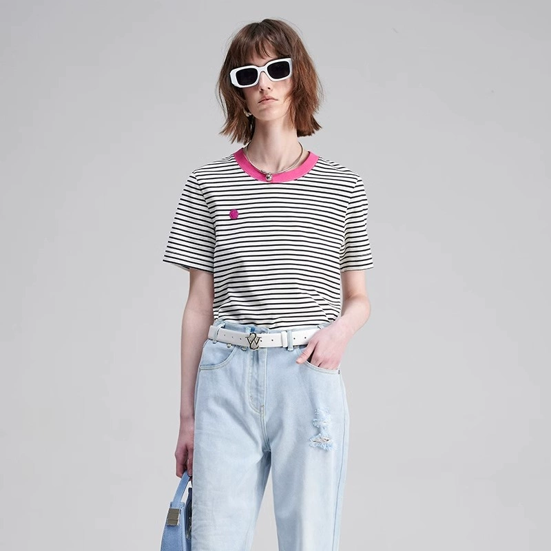 | nameOriginal | Age-reducing stripes and contrasting colors 2024 new short-sleeved T-shirt |