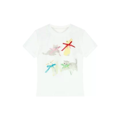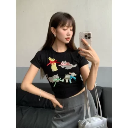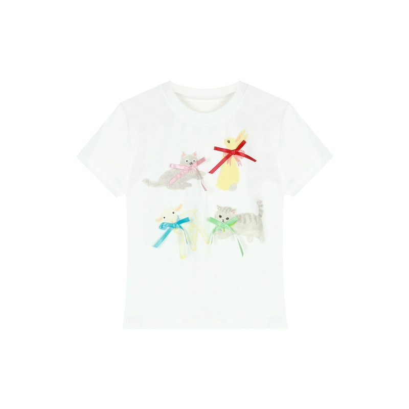 Age-reducing summer cartoon print short-sleeved three-dimensional bow