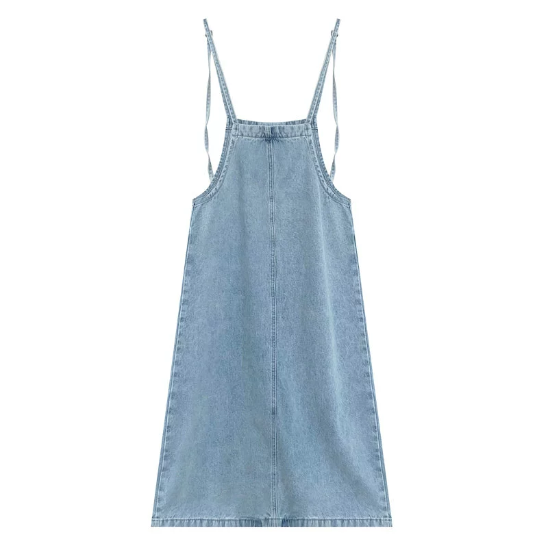 Age-reducing summer denim dress with loose temperament suspenders