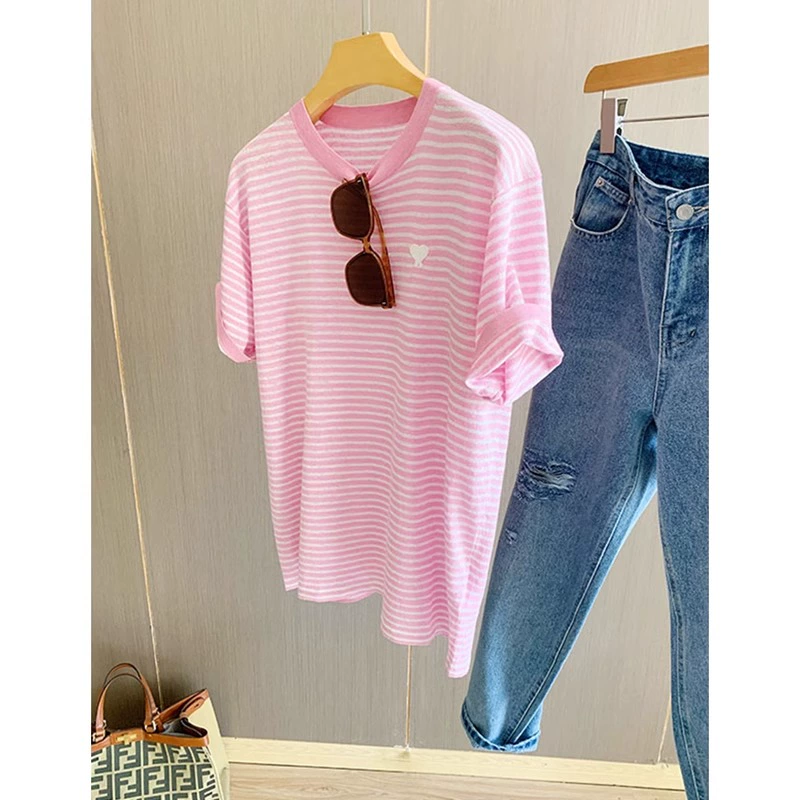 | nameOriginal | Age-reducing thin striped summer round neck short-sleeved T-shirt |