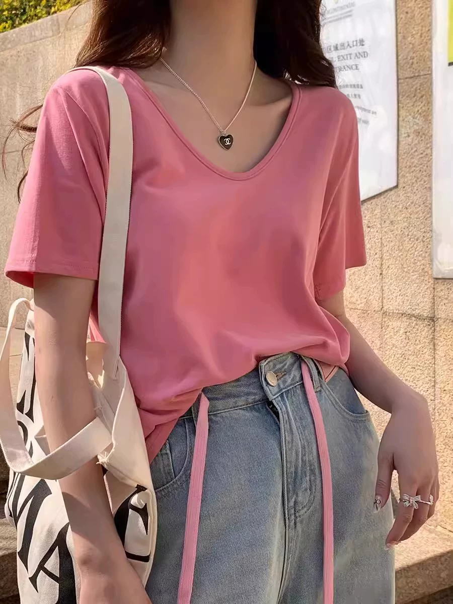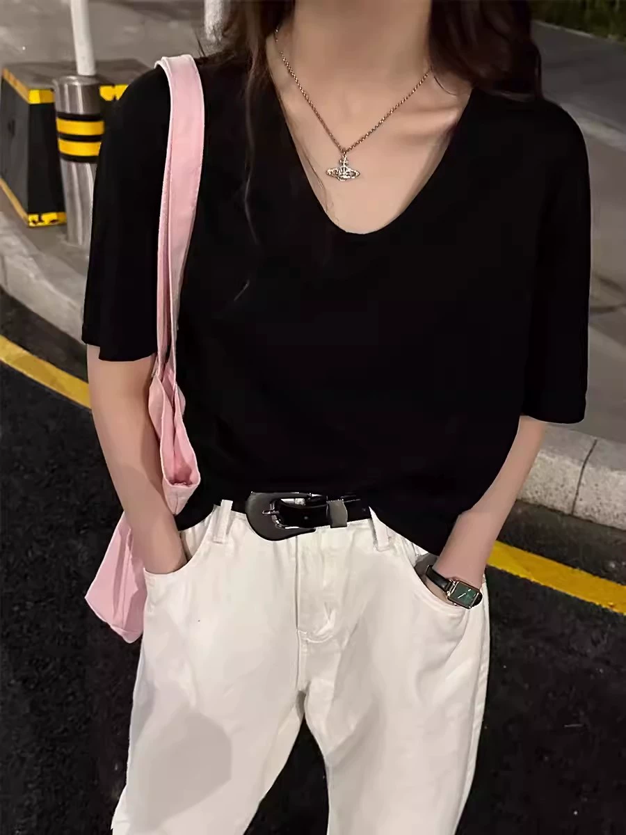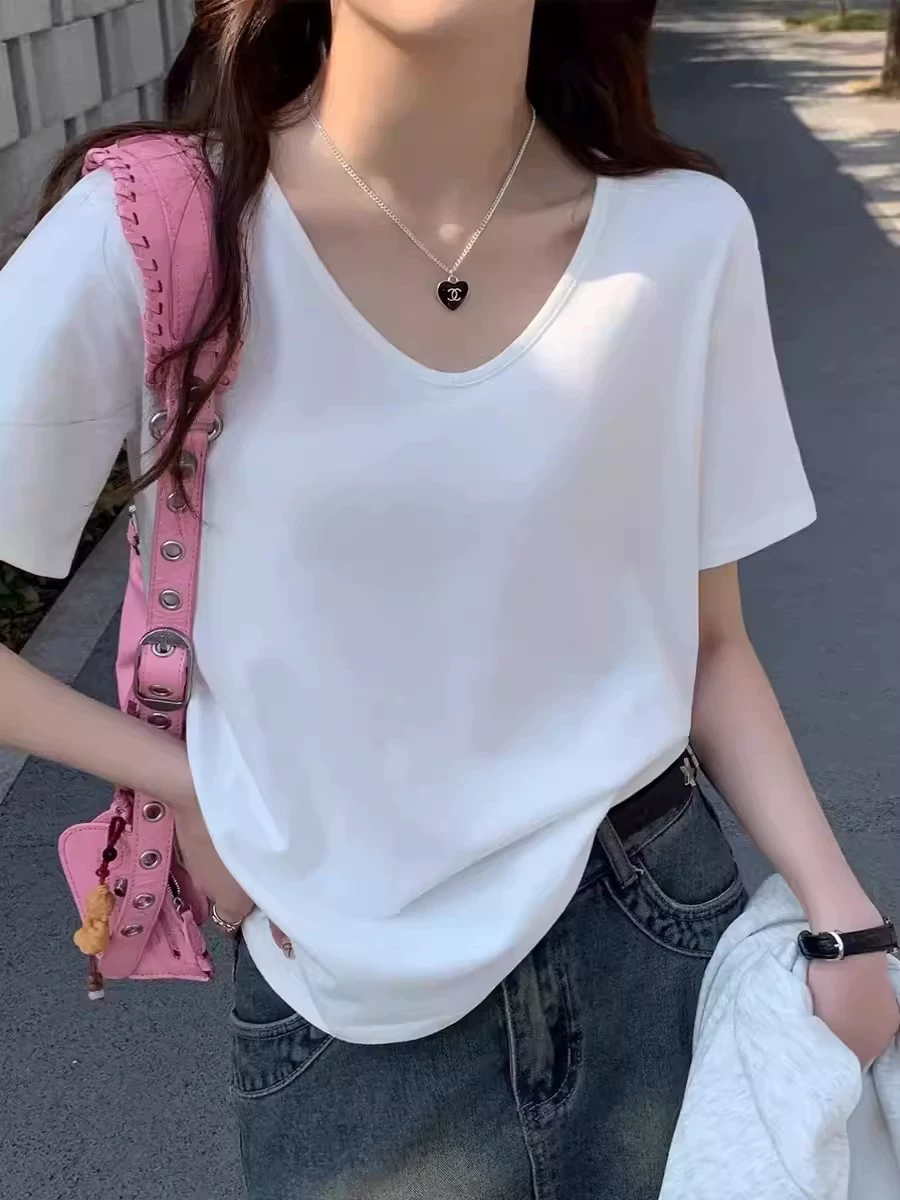 | nameOriginal | Age-reducing V-neck slim fit and versatile T-shirt with white casual short sleeves |