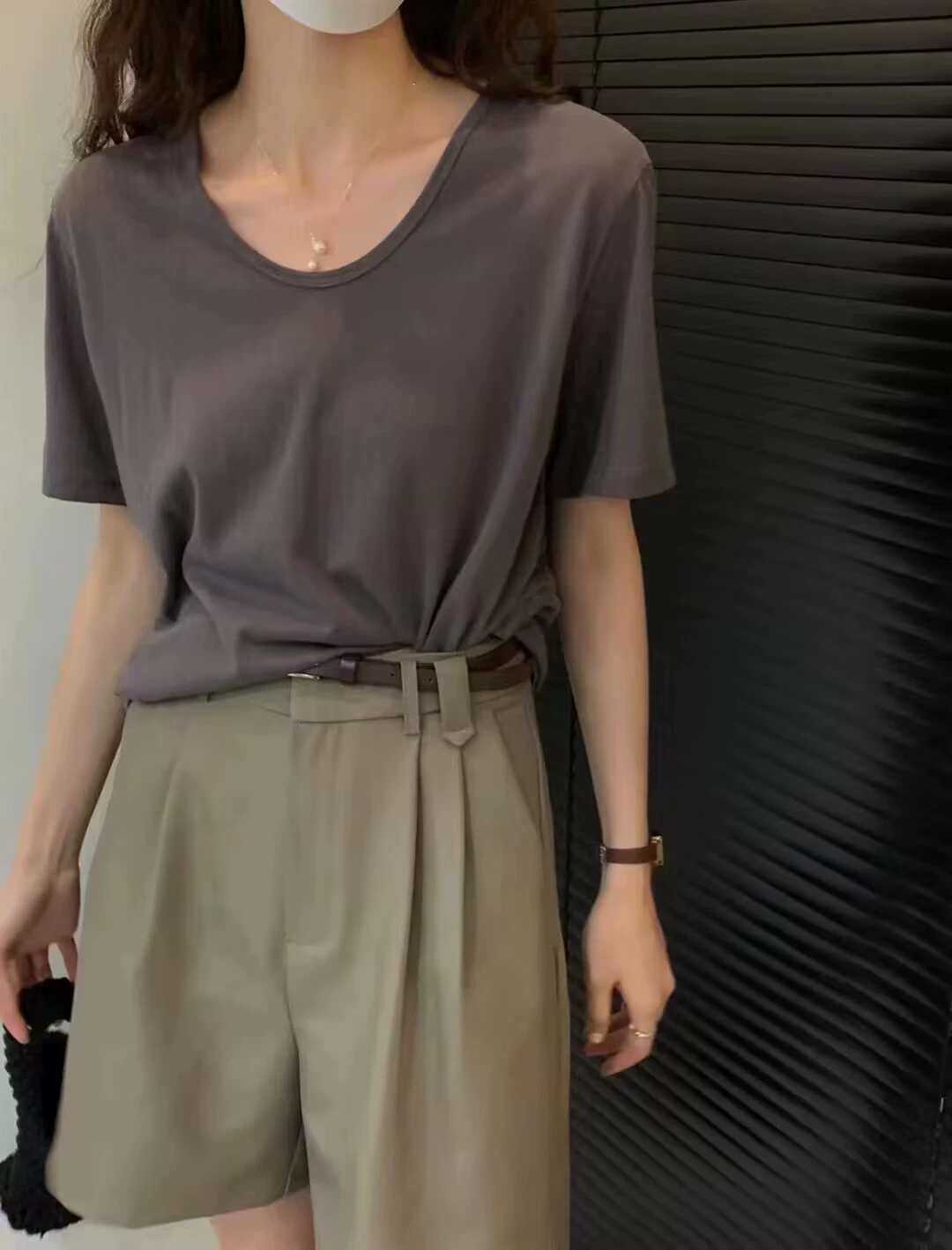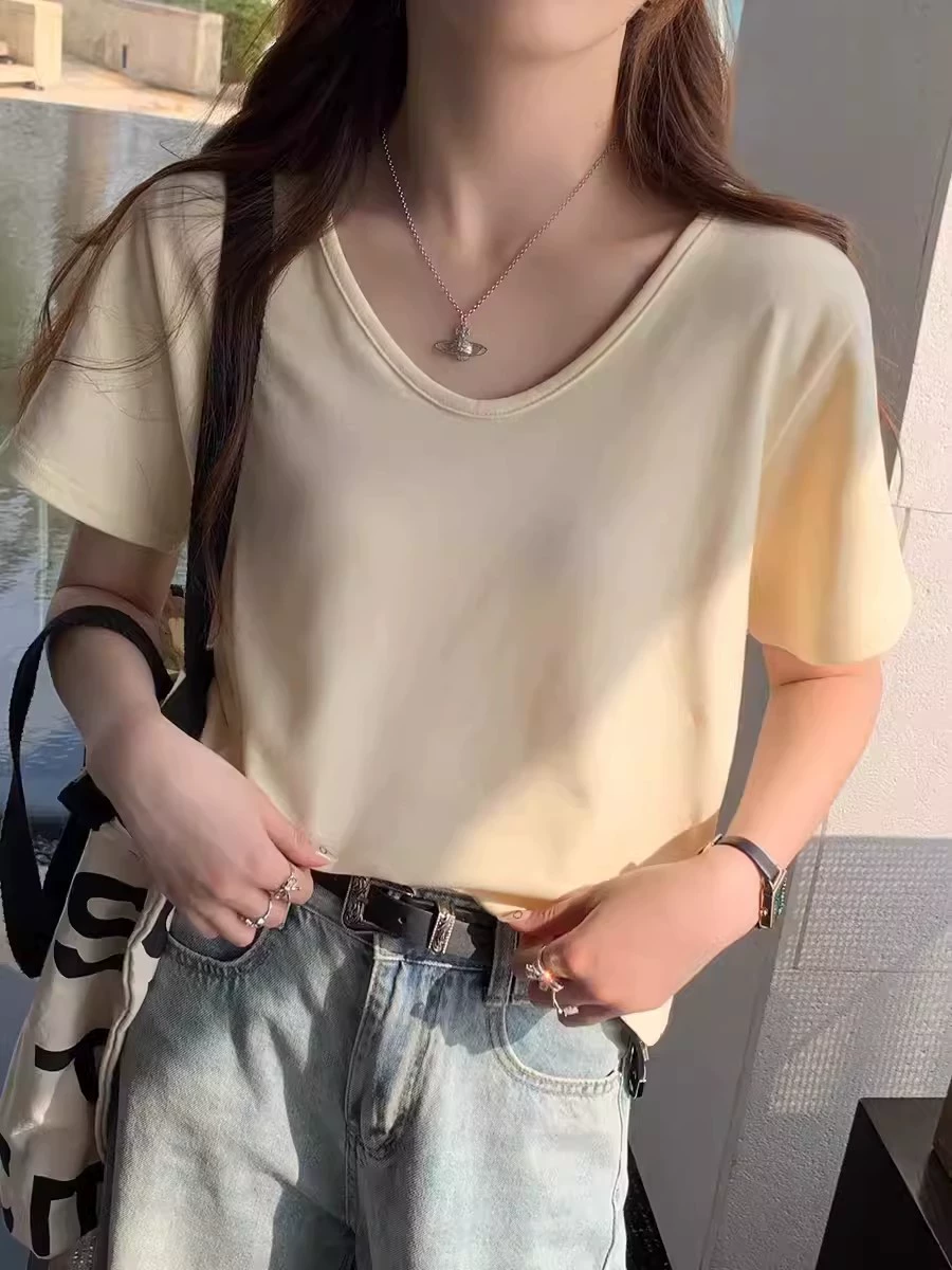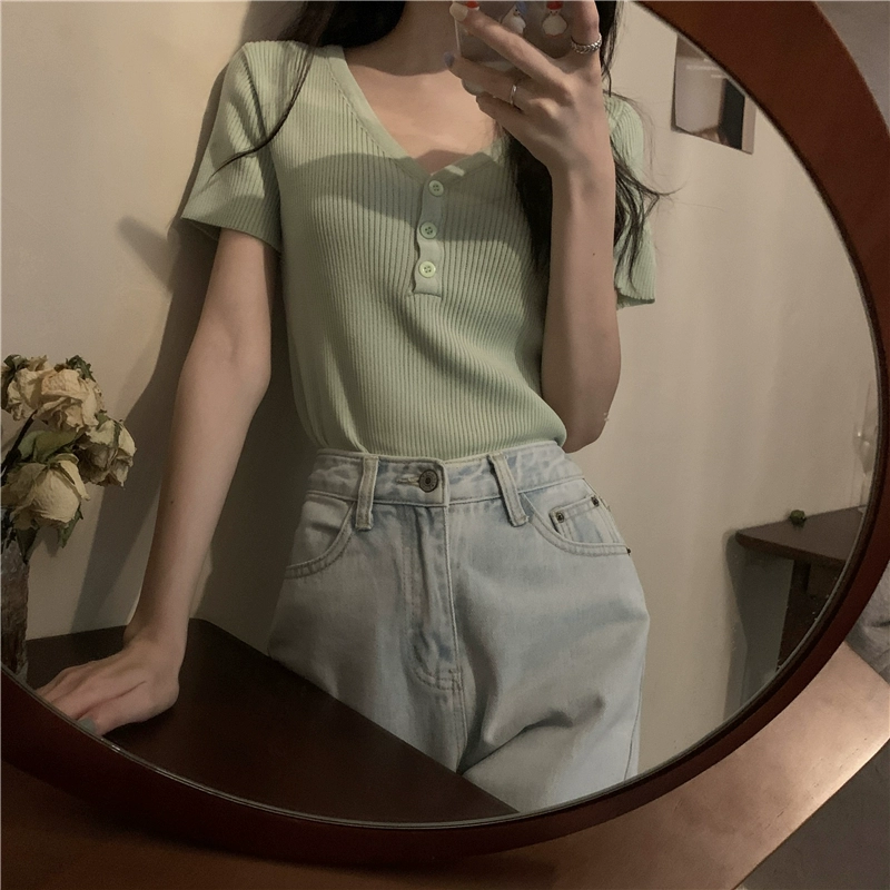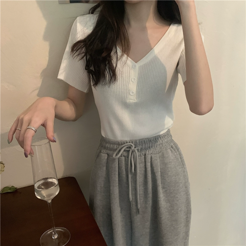 | nameOriginal | Age-reducing V-neck slim fit and versatile T-shirt with white casual short sleeves |